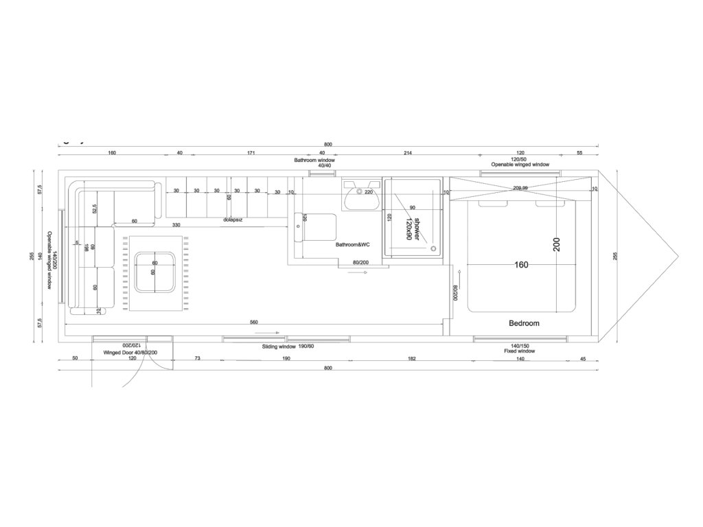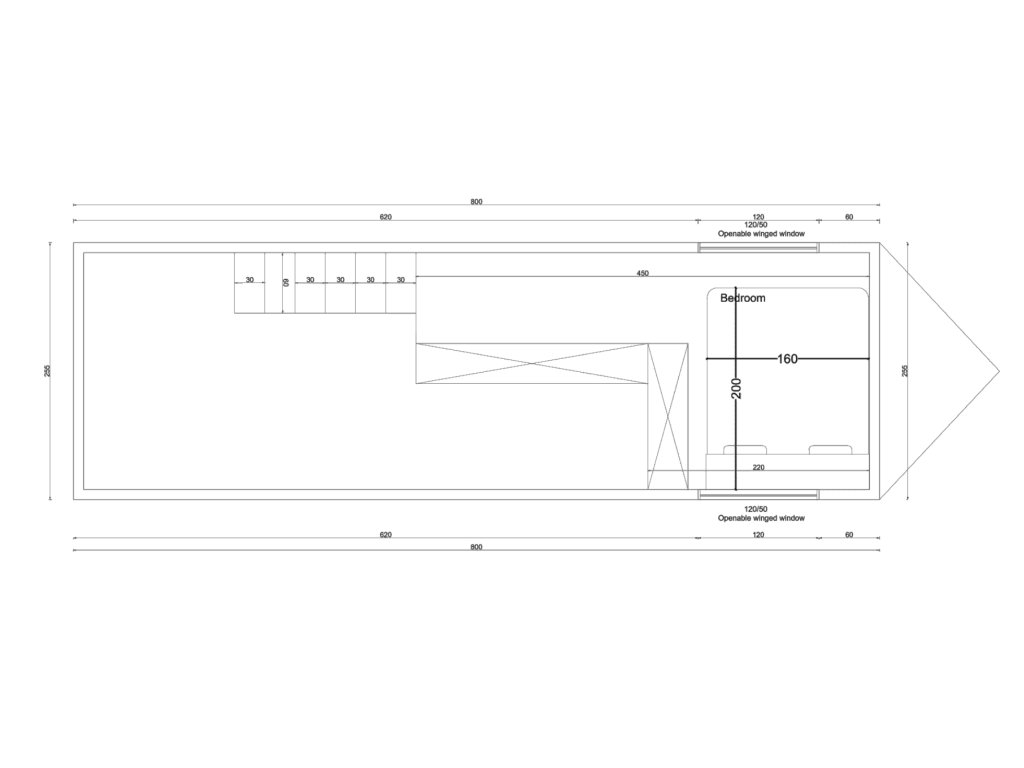 Podlaha (15cm): překližka + minerální vlna + XPS + polykarbonát + podlahová krytina (PVC/Vinyl)
