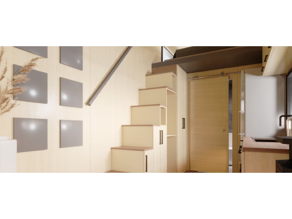 Schodiště do Loftu s vestavěnými skříňkami, LED osvětlení
