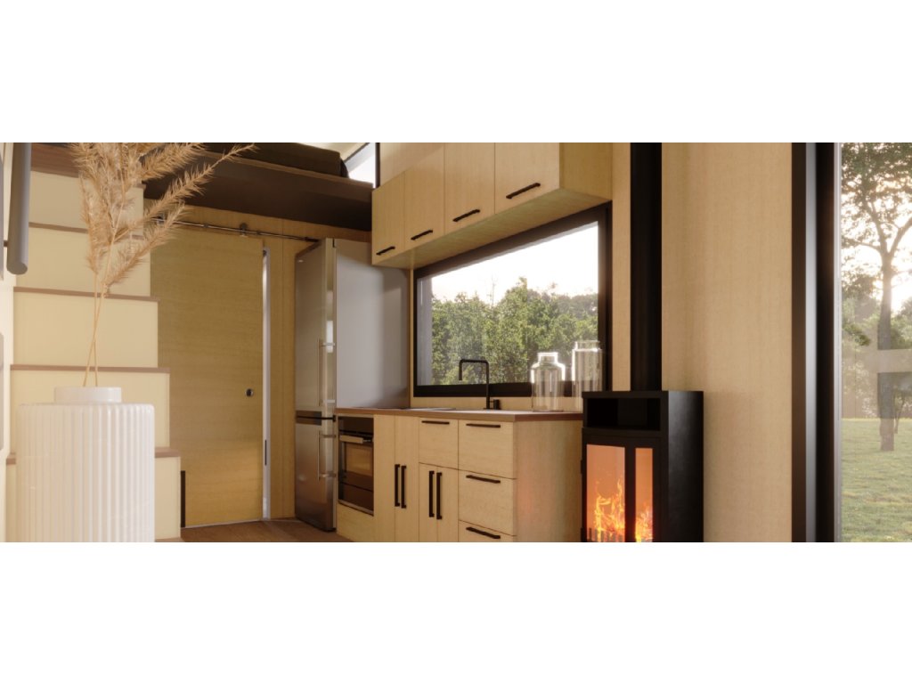 Vybavení kuchyně: komplet kuchyňská linka (MDF) + dřez + baterie + pracovní deska MDF/Akrylát/přírodní masiv, varná deska (sklokeramika/indukce)